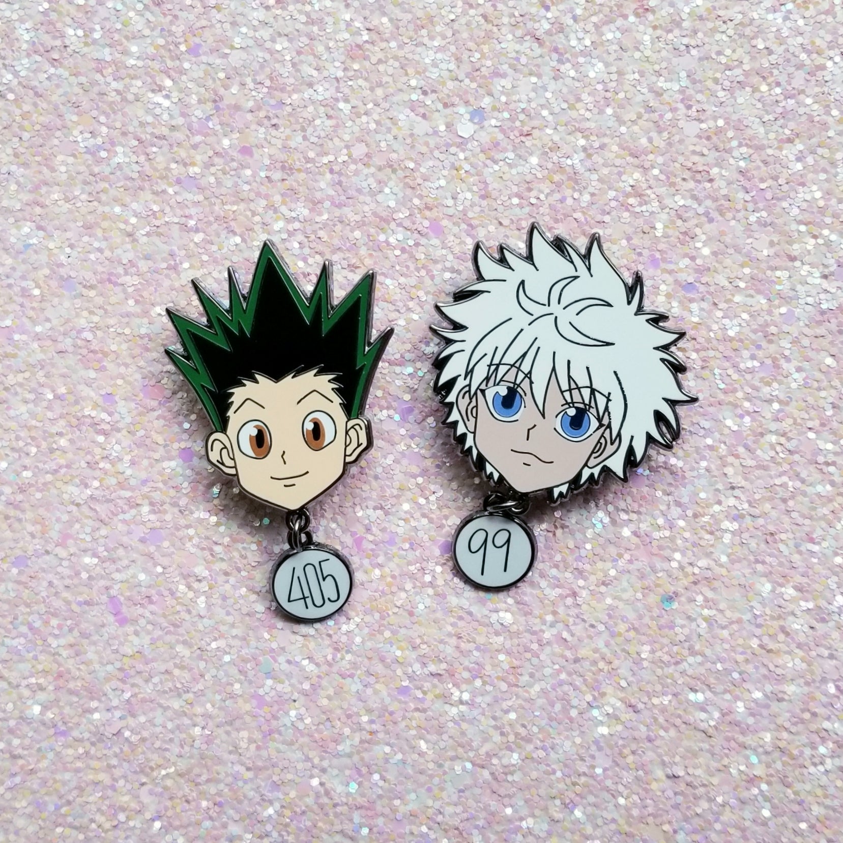 Gon and killua number badge dangle pins
